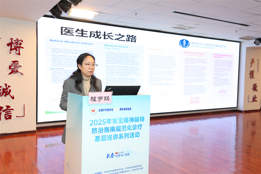 中华医学会精神病学分会继续教育学组组长、杭州市第七人民医院心身科主任程宇琪在讲话时表示,为满足广大基层医务工作者对规范化诊疗知识的迫切渴求,助力基层医疗机构精神相关学科的建设和人员能力提升,学会特别以巡回讲座的形式,将精神医学领域最新研究进展、前沿技术及临床实践经验送至基层一线,希望通过业内知名专家的倾囊相授,补齐精神障碍规范化诊疗方面的技术短板,并通过学会与基层医务工作者不断加强联系,持续深耕精卫基层工作,切实推动规范化服务触达一线、惠及群众。同时,她期望全体学员将培训精华带回各自工作岗位,积极转化学习成果,让专业服务真正延伸至基层最前沿,为区域群众织密心理健康“防护网”,筑牢民生幸福根基。